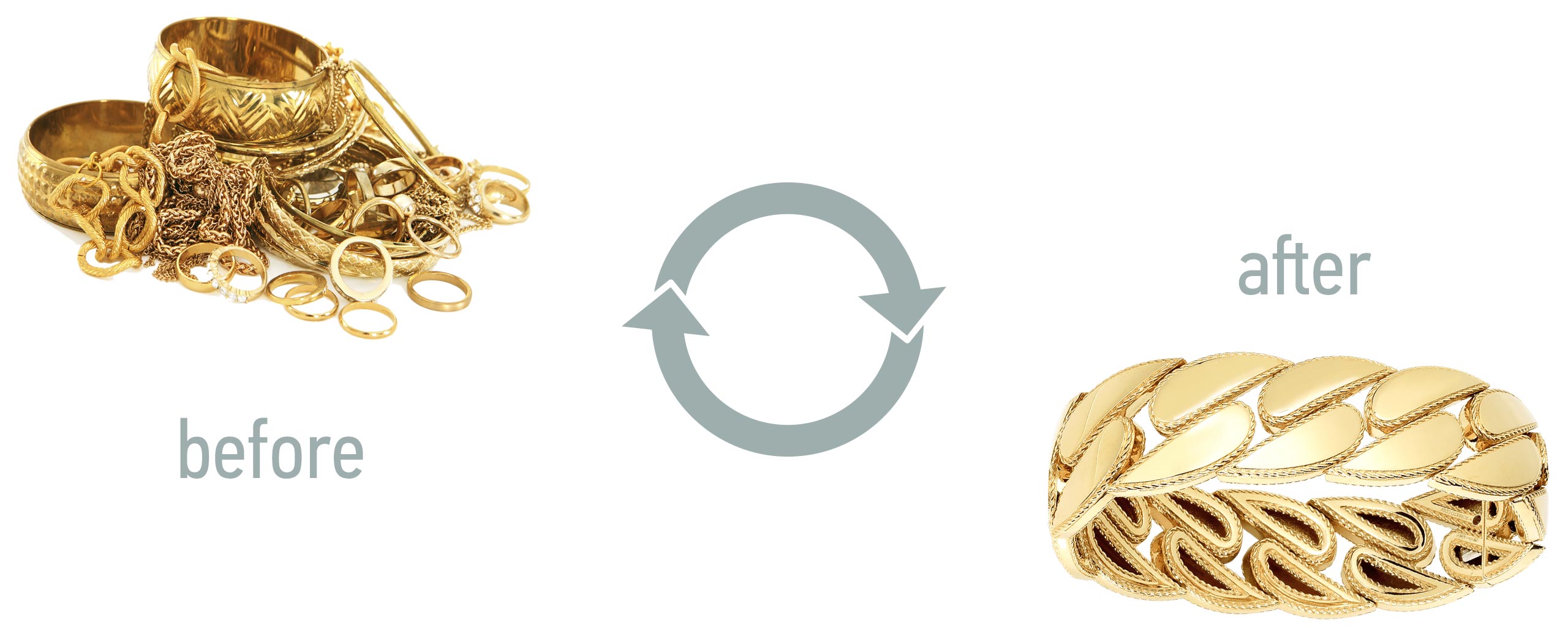 Εκτιμούμε ότι είναι καλύτερο για σας να έχετε ένα-δυο καλά πολύτιμα κοσμήματα που να τα χρησιμοποιείτε και να τα απολαμβάνετε διατηρώντας την μνήμη των δικών σας ανθρώπων, μέσω της ανακύκλωσης που σας παρέχουμε, διατηρώντας πάντα το συναισθηματικό κομμάτι των παλαιών κοσμημάτων σας!