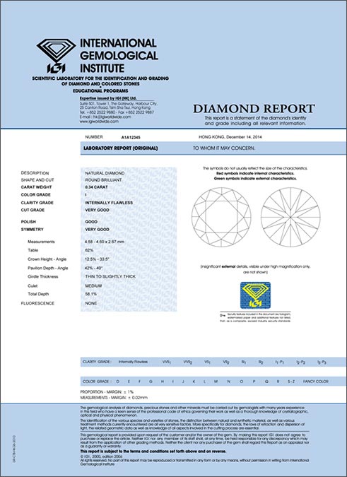 Όπως αναφέρει το IGI, είναι ένα «διαβατήριο για τους πολύτιμους λίθους σας». Έτσι, παρά το γεγονός ότι ένα πιστοποιητικό δεν μπορεί να αυξήσει την αξία ενός συγκεκριμένου κομματιού, μπορεί να διασφαλίσει το ότι η πέτρα δεν θα υποτιμηθεί, ούτε θα αμφισβητηθεί η αυθεντικότητά της. Αυτό καθιστά το πιστοποιητικό ένα ΠΟΛΥΤΙΜΟ έγγραφο!